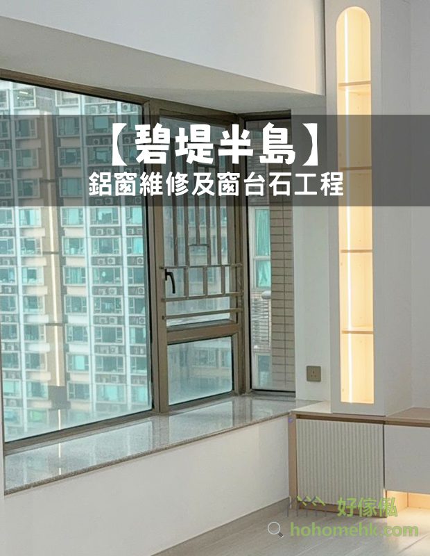 深井碧堤半島鋁窗維修及窗台石工程,包括客廳鋁窗維修,以及新造窗台石及3邊打791防水膠 (中間做斷口)。