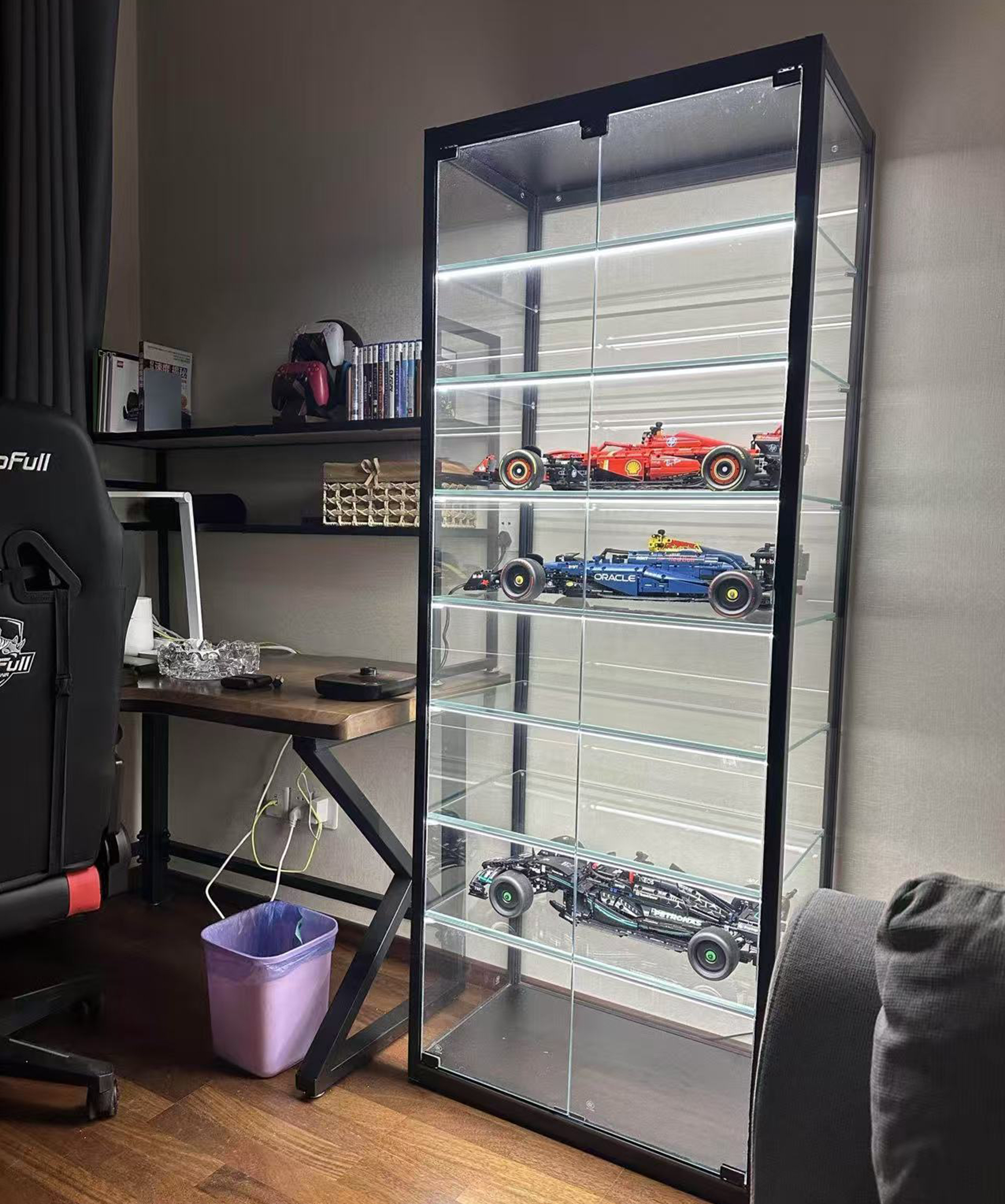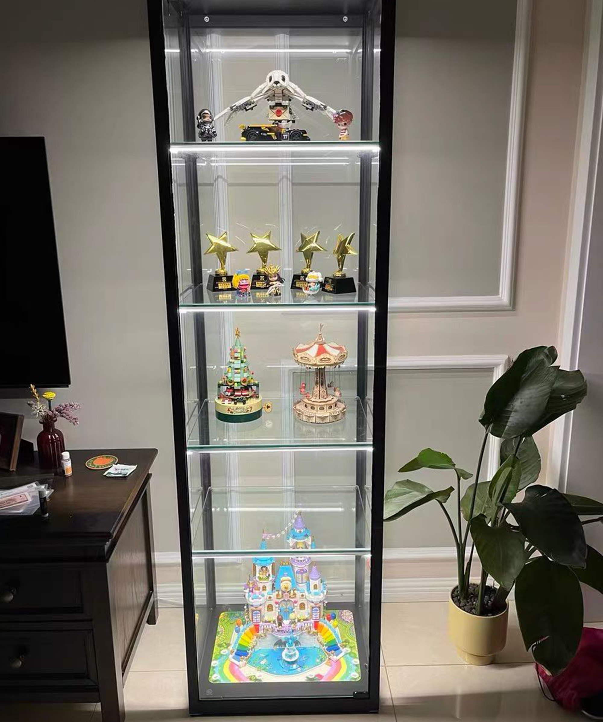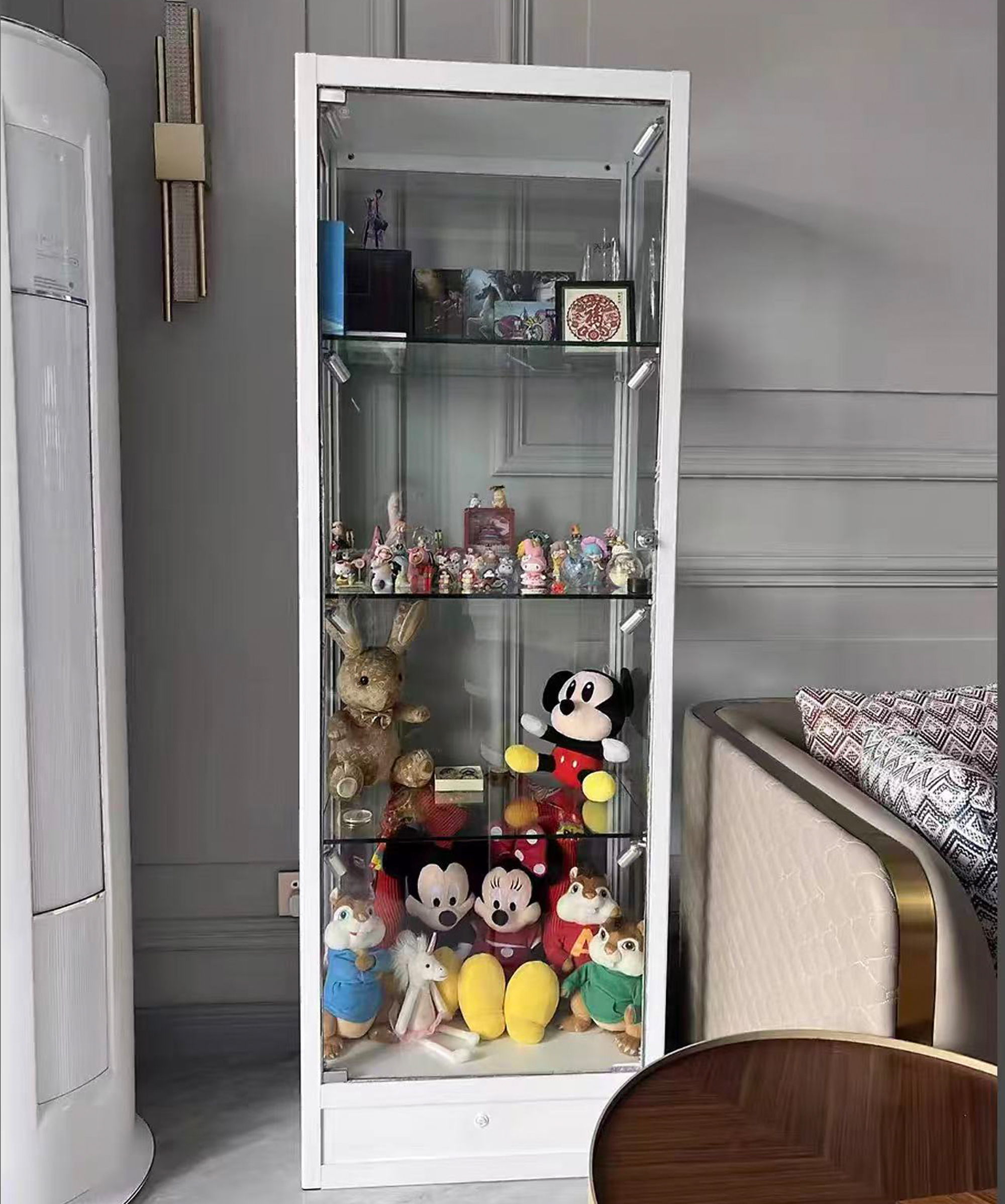 配備智能燈條,喜歡溫暖的光還是清爽的光?都可以輕鬆調節。每層櫃子有兩個射燈,打亮每一層的珍藏物品,光影效果不容錯過,連台灣人都愛這種簡約又有品位的設計。