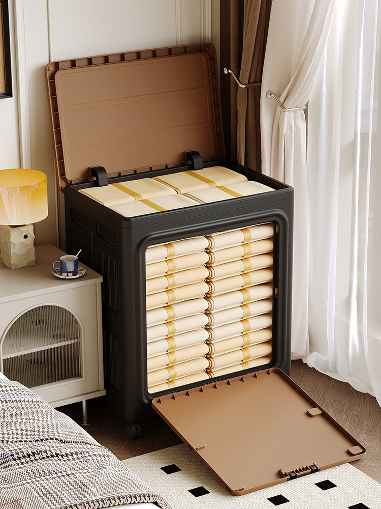 正面翻蓋打開就拎到入面啲嘢,就算疊到好高,都唔使搬走上面啲箱,換被、拎衫、攞被鋪都快好多。
