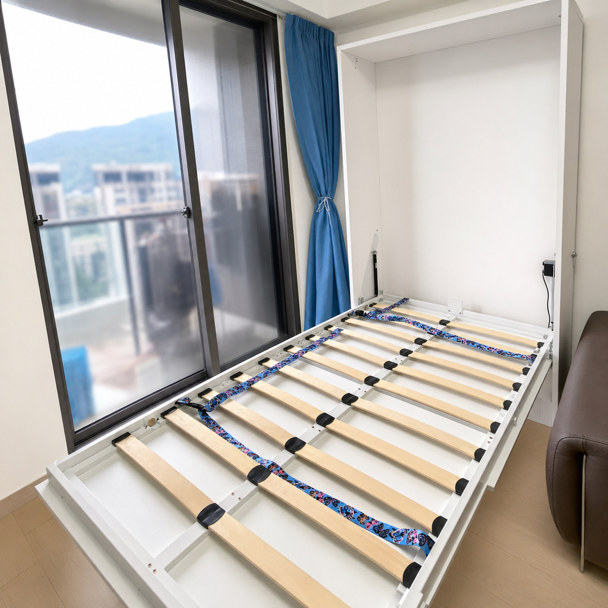 翻下即是一張穩固舒適的床,合上則瞬間釋放出更多活動空間,適合小單位或多機能房間,讓空間利用率大幅提升。