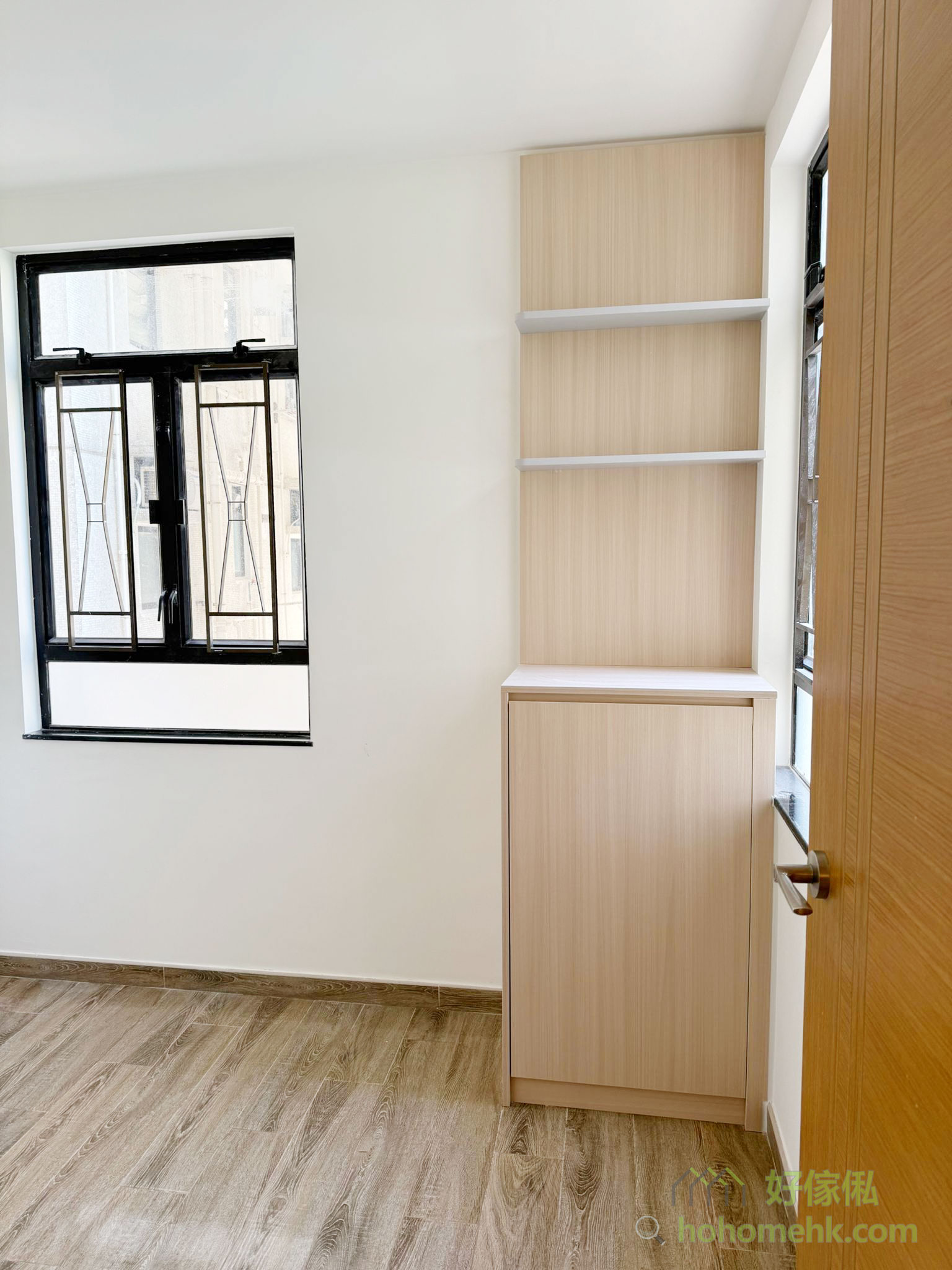 空間有限,善用窗台位置是提升收納的關鍵。我們為客戶客製化了一個貼合窗台的窗台櫃,不單增加了實用的儲物空間,還保持了室內的整潔感,讓窗台成為一個實用與美觀兼備的區域。
