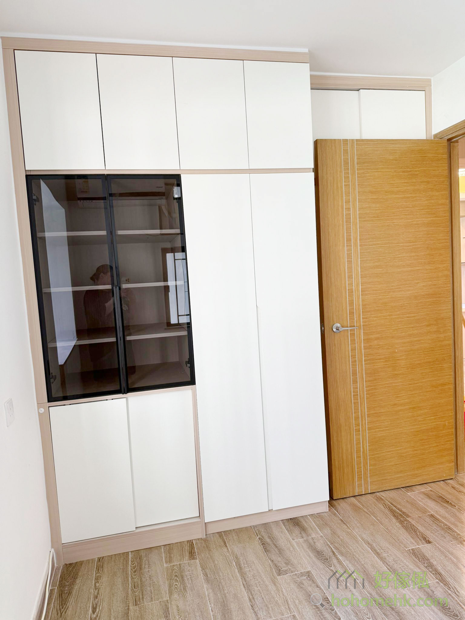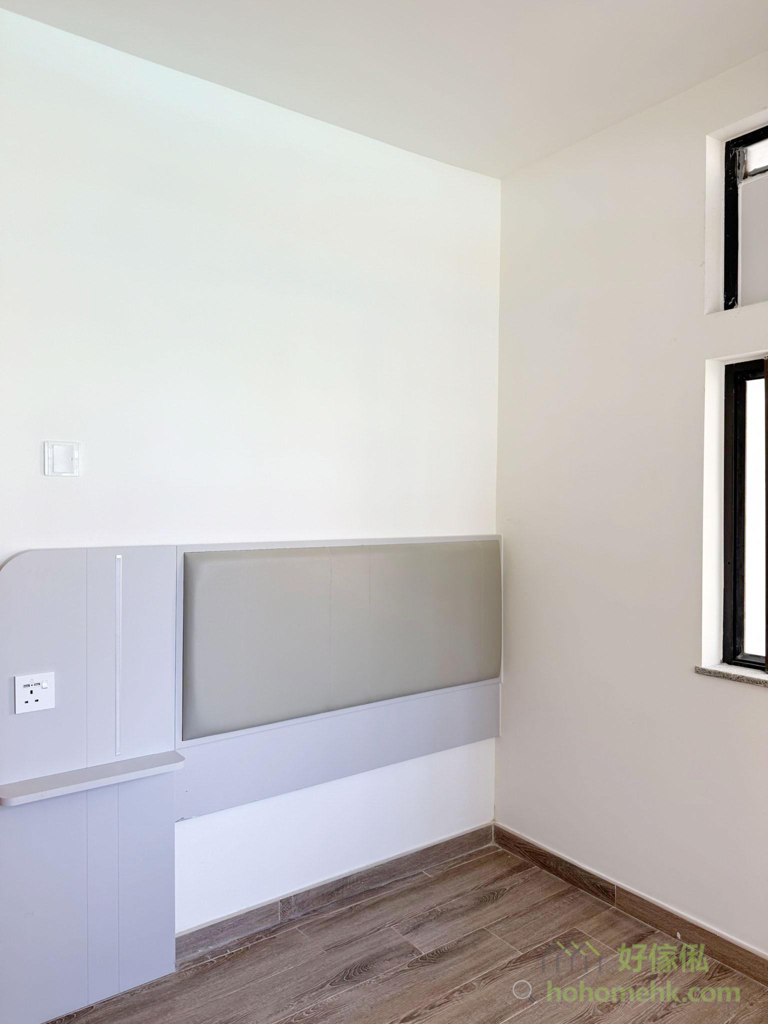 有些客戶對舊系統櫃有深厚感情,這次客戶選擇保留原有的床箱,但就沒有床頭板,影響整體美觀和機能性。我們特意為客戶設計了一款全新床頭板,既提升了睡房的設計感,亦完美配合床箱的尺寸及風格,讓舊物重現新價值。另外,衣櫃及半腰櫃就是全新客製化,可以完全用盡所有空間。