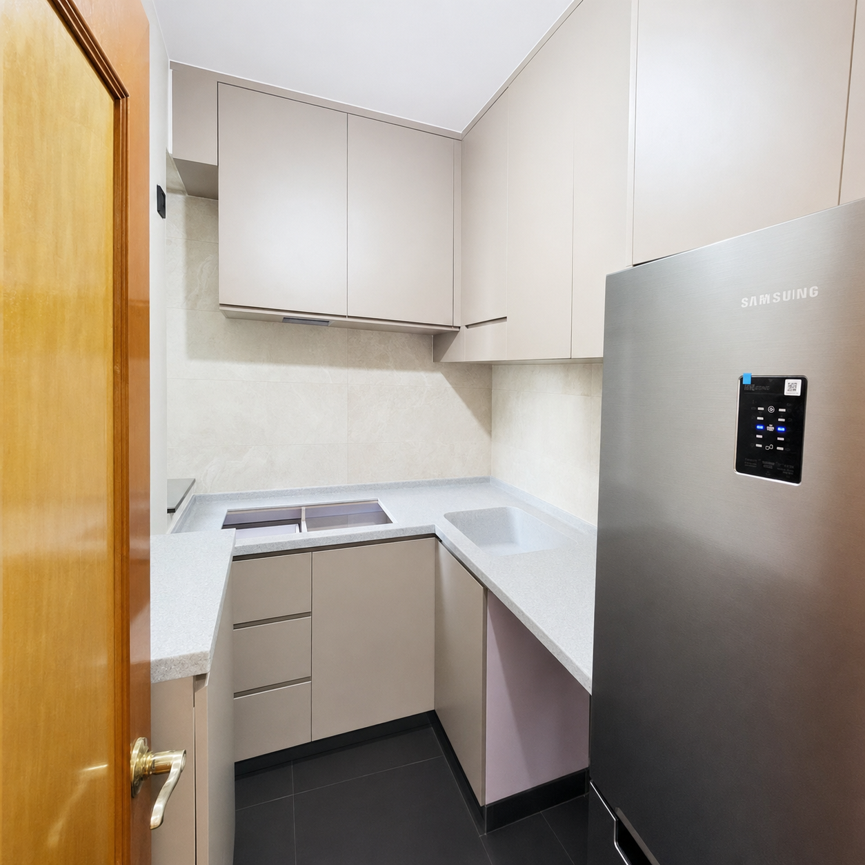 在構想廚具的電器擺位時,好多客人都會忽略了抽油煙機有一條抽油煙管。這條抽油煙機管,好多時都要在廚具的牆壁櫃裡面走的。所以抽油煙機不宜離窗口太遠。路程越遠,所佔據的牆壁櫃內部空間就越多,就會浪費保貴的廚具收納空間。