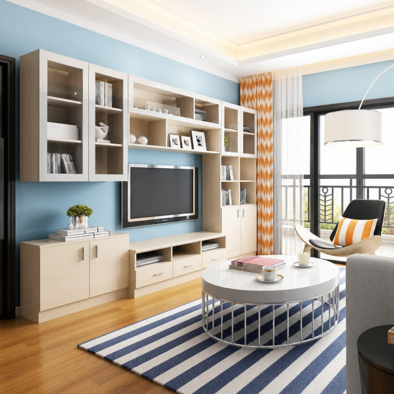 現今新樓普遍傾向面積細、間格不太見使,因此不少戶主都會選擇客製化多機能組合櫃、電視櫃、電視組合櫃、裝飾櫃、客廳飾物櫃等,配合家居空間、戶主的獨特需要,又或用作室內空間的分割線,如分開客飯廳、作為睡房及廳之間的牆,令家居佈局分明,空間更見使。